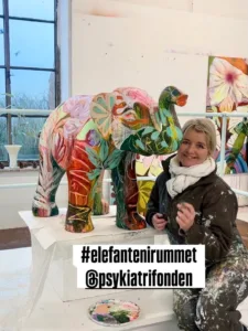 Jeg er både taknemmelig og stolt over at kunne give min personlige fortolkning og male på en elefant til fordel for Psykiatrifondens arbejde for mennesker, der lever med psykisk sygdom. Det er et vigtigt formåll. Og for mig langt mere end et kunstprojekt.